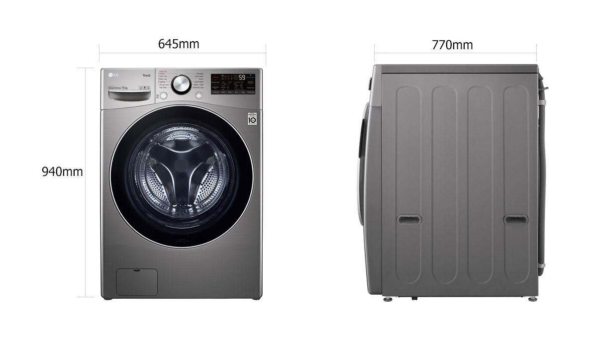 غسالة بسعة 15 كغ وتقنية محرك الدفع المباشر بالذكاء الاصطناعي والبخار لون سلفر